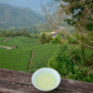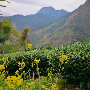 Large dark green dry green leaves. The brew's color is a bright, light and shiny yellow. It has an excellent transparency. The open leaves are dark green, a sign that they've received plenty of sunshine. The oxidation is light, in harmony with this altitude.