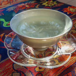 The glass Chatuo can be used as saucer for small tea cups like my singing cups. The glass material adds transparency and lightness to the Chaxi.