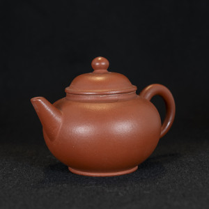La forme de cette théière est similaire à une Shui Ping. Celle-ci est un peu plus haute et son bec plus court. Sa glaise zhuni moderne (rouge) est dure et de bonne qualité. Grâce à sa cuisson à température élevée, le couvercle produit un son aigu quand il touche le corps de la théière.